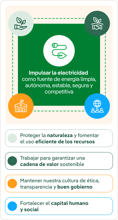 La sostenibilidad se encuentra integrada en nuestro modelo de negocio, un modelo que crea valor para todos. Así, nuestras Metas de Sostenibilidad 2025-2030 [PDF] –bajo el lema "Hacia un futuro eléctrico, un futuro sostenible"– definen un conjunto de objetivos de sostenibilidad a largo plazo y miden el alcance de las iniciativas impulsadas previamente. Estas son algunas de nuestras metas más destacables: