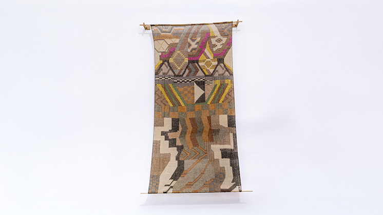 El poder de impregnar de nuestros colores al mundo [The Power to Imbue the World with Our Colours], 2025. Handwoven chaguar fibre (Bromelia hieronymi) dyed with leaves, roots and fruits from the Gran Chaco. By Claudia Alarcón. Courtesy of the artist and Cecilia Brunson Projects.