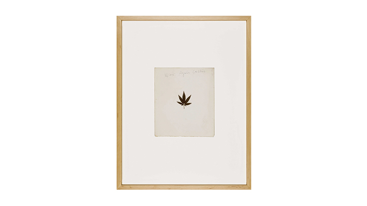 Vitex: Agnus Castus, 1972. Vitex Agnus Castus leaves on paper with pencil annotation. By Joseph Beuys. Courtesy of the Iberdrola Collection.