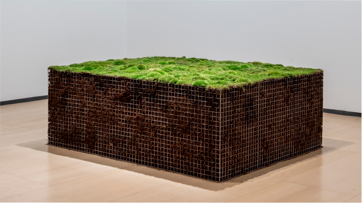Volume for Lying Flat, 2016. Peat, green moss, soil and galvanized steel wire mesh. By Meg Webster. Courtesy of the artist and Paula Cooper Gallery, New York.