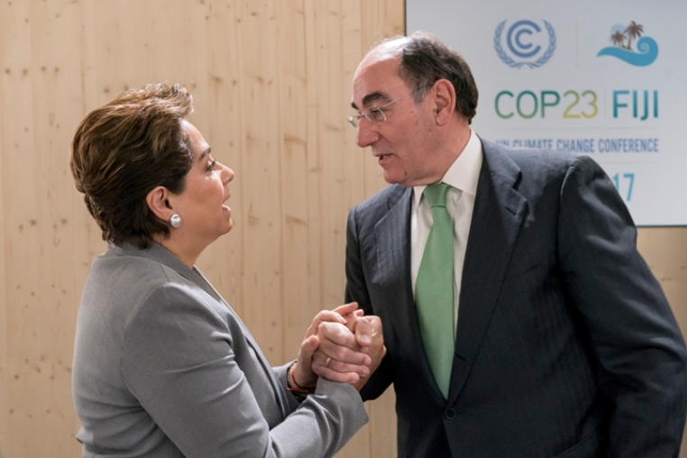 El presidente, Ignacio Galán, en la Cumbre del Clima de Bonn, junto a Patricia Espinosa, secretaria ejecutiva de la CMNUCC.